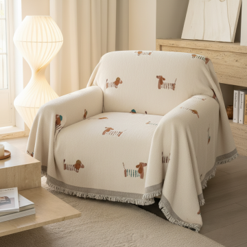 去掉沙发巾上的抱枕,加上一只金毛趴在沙发上睡觉 原比例 保留沙发巾细节