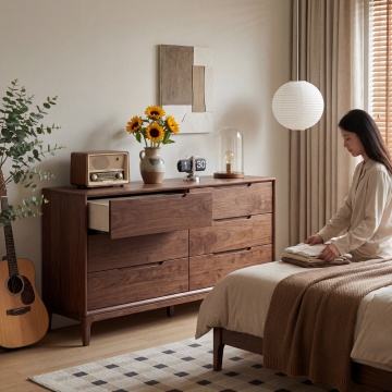 一张木桌的特写镜头,采用极简主义摄影风格,暖色调光线从左侧斜射,在深棕色木纹桌面上形成柔和的光影渐变,桌面边缘可见一本翻开的白色笔记本,右上角有一小株绿色植物的局部枝叶,背景模糊处理,突出木质纹理的细腻质感和简洁宁静的氛围。