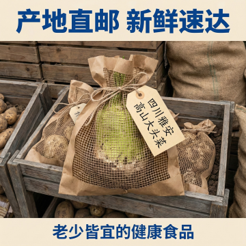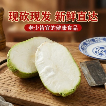 这张图片是产品主体这款产品是大头菜,是四川特产,我需要设计10张主图在拼多多上面售卖 主图场景布局能用到的多场景元素布局显得亲民一点 产品文案可以用:老少皆宜的健康食品。蕴含丰富的营养价值,现砍现发
