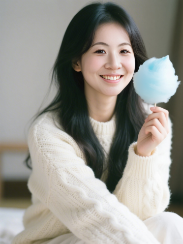 柔软毛衣与棉花糖的轻拟物碰撞,清新柔光营造温暖甜蜜感,实景与动漫风交融,传递春日舒适氛围。