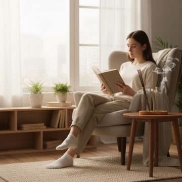 暖光下的居家静谧时刻,轻拟物风设计融合简约主义,面料质感与实景氛围交织,传递舒适、温馨的日常美学。