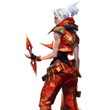 二次元动漫风格立绘,白色背景,一位身着红色与黑色为主色调华丽服饰的女性角色,她有着金色的长发,头戴带有红色宝石的黑色发冠,眼神锐利而自信。上身为黑色紧身露肩上衣,点缀金色花纹,外披红色金边披风,披风边缘有毛绒装饰。下身为高腰红色短裙,裙摆呈不规则层叠设计,搭配黑色过膝长靴,靴筒有金色扣带。手中持有一把燃烧着红色火焰的长剑,剑柄华丽镶嵌宝石。整体造型充满力量感与高贵气质,线条流畅,色彩对比强烈,光影效果突出,人物姿态挺拔,微微侧身,一只手握着剑柄置于身侧,另一只手自然下垂,披风随风飘动,展现出动态的美感,细节丰富,服饰质感细腻,具有浓厚的奇幻战斗风格。