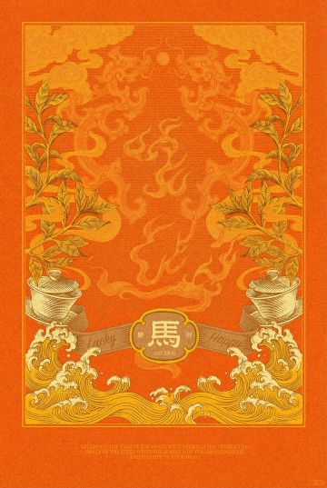 工笔与岩彩交融,鎏金勾勒骏马华纹,融合中式民族元素,喜庆祥瑞,尽显复古雅致。