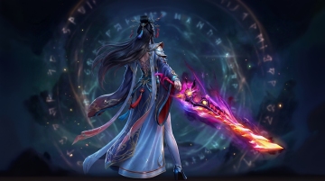 一个英俊的中国古代道长,飘逸的黑发,打太极