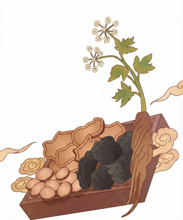 六个系列的中药元素集合,每个元素都采用复古手绘插画风格,以米色为纯色背景,包含以下不同内容:1. 左侧:一本打开的古旧草药书,书页上放着几支人参和灵芝,旁边散落着几颗黄色的药丸;右侧:一个棕色陶罐,里面插着几支干枯的艾草,罐口系着麻绳。2. 左侧:一个竹编簸箕,里面装满了晒干的金银花和菊花,旁边放着一个小铜秤;右侧:一张卷起来的草药图谱,用红绳系着,旁边散落着几片银杏叶。3. 左侧:一个青花瓷碗,碗里盛着当归和枸杞,旁边放着一把小银勺;右侧:一棵手绘的草药植株,根部带着泥土,叶片翠绿,旁边有几颗红色的果实。4. 左侧:一个木质药柜抽屉,抽屉上贴着“川芎”的标签,里面露出几支川芎根茎;右侧:一个玻璃药瓶,里面装着黑色的药膏,瓶口用软木塞封着,旁边放着一支小毛刷。5. 左侧:一张手绘的人体经络图,图上用红线标出穴位,旁边放着几根银针;右侧:一个小竹篮,里面装着薄荷和藿香,篮子把手处系着蓝色布条。6. 左侧:一个铜制药炉,炉口冒着热气,旁边放着一把蒲扇;右侧:一张写着草药配方的泛黄纸张,纸上放着几支甘草和黄芪,旁边散落着几颗褐色的种子。所有元素排布规整,线条细腻,色彩以棕色、绿色、红色为主,呈现出古朴自然的氛围,无任何文字、LOGO、电话地址及二维码。