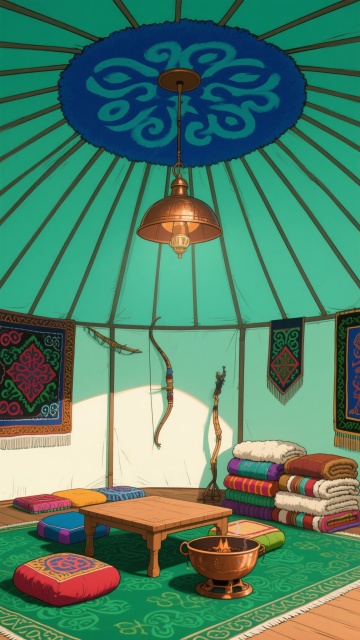 二次元,大平原,旷野,细节丰富,绿色和蓝色,民族风,生成2张,不要人,4k,9:16
