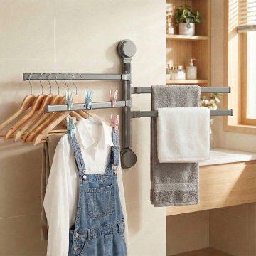 这是一个四杆服装架 放在服装店里展示服装 生成两张960*700的场景图片