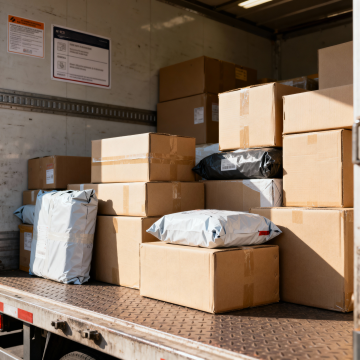 超写实风格,手持SF快递箱的男性快递员,戴着黑色SF棒球帽,身着灰色制服,制服有红色领边和袖口,面部有红晕,嘴角上扬,表情亲切自然,眼神温和有神,制服上有SF标志,快递箱上有SF标志和图案,整体光影柔和,立体感强,材质细节丰富,背景简洁白色,突出人物主体,职业形象鲜明,传递专业可靠的服务感。