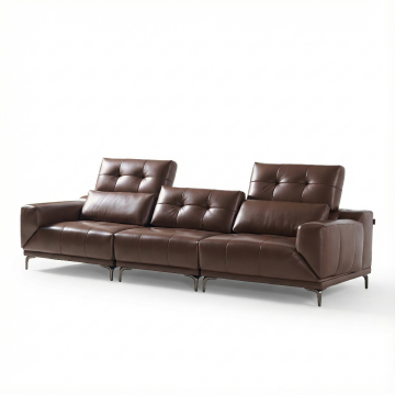 一张展示4个不同配色、不同样式、不同材质沙发造型的产品海报,白色背景,上下两行对齐排列。整体采用高品质3D渲染,具有超写实的质感表现,皮革沙发呈现出细腻的纹理和柔和的光泽,高光和阴影过渡自然,立体感强。沙发造型设计简约现代,线条流畅,每个沙发都有独特的设计细节,如不同的扶手形状、靠背高度、坐垫样式和腿部设计。色彩搭配和谐,每个沙发的配色都具有鲜明的个性和时尚感。画面采用居中对称构图,视觉层级清晰,4个沙发大小一致,排列整齐,形成稳定的视觉平衡。整体风格简洁、专业、高端,突出产品的设计感和质感,适合用于家具产品展示和销售推广。