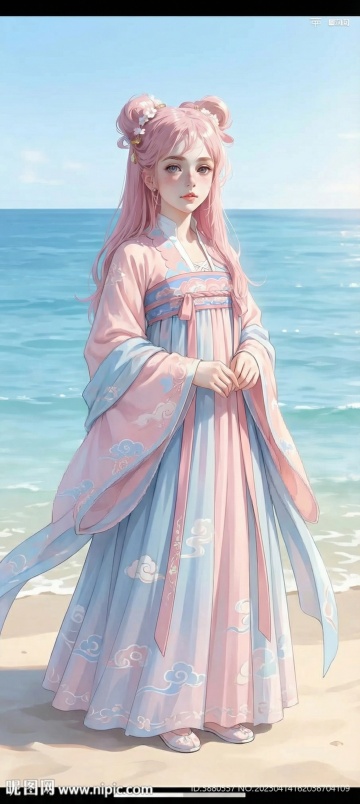 梦幻水彩风,唯美女声歌手,蓝白花海中,动漫虚拟自然,清新唯美。