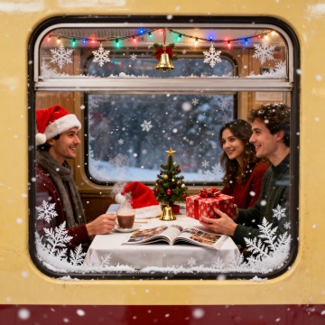 温馨喜庆的圣诞夜,3D重拟物风呈现雪中燃烧的壁炉与璀璨树灯,光影交织,粒子飘雪营造梦幻实景感,油画质感尽显节日温情。