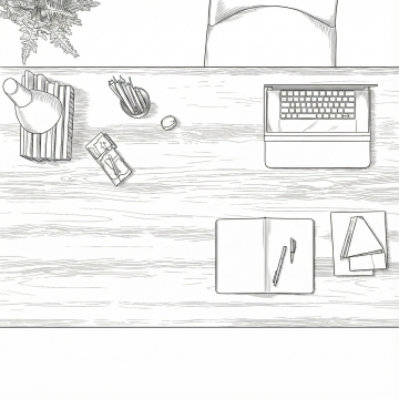 自然光从窗户斜射而入,在浅色墙壁上投下清晰的窗格阴影,营造出明亮通透、宁静舒适的居家办公氛围。一张原木色桌面的书桌,桌面光滑有自然木纹,桌腿为白色简约设计。桌上放置着不同场景和布置:左侧可能是一盆茂盛的绿色观叶植物,右侧是一台打开的银色笔记本电脑,电脑旁叠放着几本不同厚度的书籍,书籍上点缀着一盆小型多肉植物在白色花盆中;或者桌面上是一盏简约设计的台灯,旁边散落着几本翻开的笔记本和一支金属钢笔,桌角可能还有一个小巧的相框或一个复古风格的时钟;又或者是桌面上整齐排列着绘画工具,几支不同型号的画笔插在陶瓷笔筒中,旁边放着打开的颜料盒和一张铺展开的素描纸,角落点缀着一杯热气腾腾的咖啡杯。整体画面采用写实主义风格,色彩以原木色、白色、绿色为主,光影对比柔和,细节丰富,展现出现代简约而不失温馨的不同书桌场景布置。