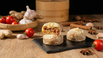 中式感十足的蒸饺跃出竹笼,重拟物风结合浮雕质感,光影交错中展现实景动态,节日氛围浓郁。