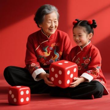 国潮风与软3D结合,剪纸元素融入温馨场景,祖孙共庆中秋国庆,卡通感十足,喜庆祥和。