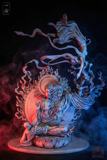 一张以汹涌燃烧的火焰为背景的海报,火焰呈现出明亮的橙黄色核心过渡到深沉的暗红色边缘,具有高度写实的质感和动态的流动感,光影对比强烈,高光区域明亮耀眼,阴影部分深邃浓重。画面中央偏上位置有一个清晰的哪吒剪影,他脚踏风火轮,手持火尖枪,身披混天绫,姿态英武,剪影边缘锐利。哪吒剪影的周围和背景火焰中巧妙融入龙纹剪影元素,龙纹线条流畅,呈现出盘旋飞舞的姿态,与火焰的流动感相呼应。整体设计风格统一,火焰的热烈氛围与哪吒、龙纹的神话主题相得益彰,视觉冲击力强,能迅速抓住观者目光,传达出力量与激情的核心信息。