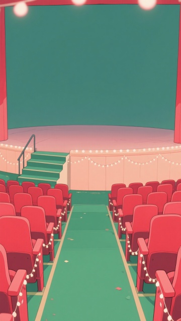 二次元卡通,东北,舞台,氛围欢乐、过年,浅红色、浅黄色,不要人物,细节丰富,9:16,生成二张