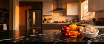 软3D风格的现代简约厨房场景,整体采用明亮的白色调为主,搭配原木色的温暖点缀,营造出清新自然且宁静舒适的氛围。画面以大理石纹理的白色厨房台面为视觉焦点,台面上放置一个浅绿色的盘子,里面装有几颗鲜红饱满的西红柿和被切开的青柠。台面右侧边缘有一个木碗,里面放着一个黄色的柠檬。背景中,白色的橱柜带有简约的木质把手,橱柜上方的墙壁上挂着一个木质挂杆,上面挂着几条浅色的毛巾和几个不同大小的木质锅铲、汤勺。灶台位于左侧,上面有一个银色的锅具,旁边的台面上摆放着装有各种香料的玻璃罐、一个木质砧板以及盛放着彩色水果的木盘。右侧窗户透进柔和的自然光,在台面和橱柜上形成清晰而柔和的光影效果,光线明亮且均匀,阴影过渡自然。整体画面构图遵循三分法,物体摆放错落有致,空间感强,细节丰富,具有柔和的3D质感和平滑的材质表现,色调和谐统一,给人一种干净整洁、温馨宜居的感觉。