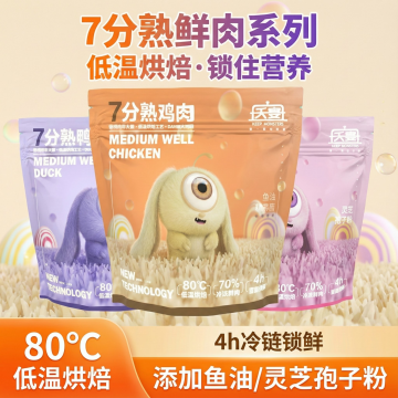 拟人风猫咪萌趣吐舌,3D质感猫粮环绕,大字风标语强化促销感,重拟物风设计突出真实美味,整体充满可爱与趣味,传递节日般欢愉的喂养体验。