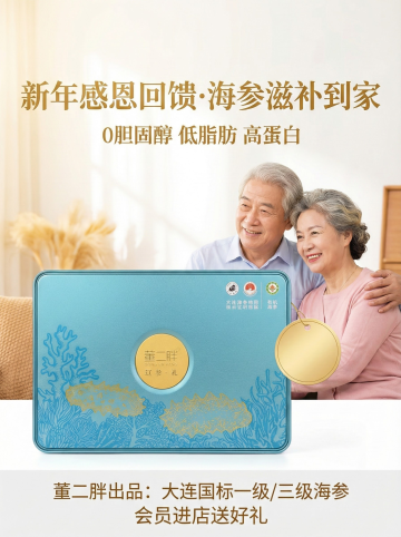产品:图片中的海参礼盒 场景:呈现出很温馨的氛围,画面里是一位年轻女性(穿着带小点点的白色衬衫)和一位白发年长女性(戴着眼镜、穿浅棕色开衫),像是晚辈和长辈(比如孙女与奶奶)。年轻女性俯身靠近长辈,两人笑着一起看向她手里的产品,互动亲昵又温暖~