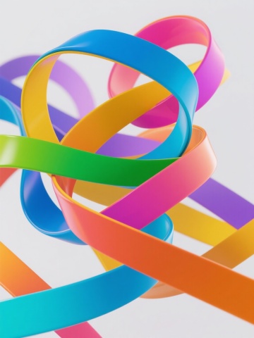 3D渲染风格,以纯净的白色为背景,画面底部有一条红色的飘带,飘带上方边缘有一条金色的飘带,两条飘带呈现出自然的波浪形褶皱,具有光滑的丝绸质感和明亮的高光,整体构图简洁大气,留白充足,色彩对比鲜明,营造出简约而优雅的氛围。