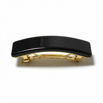 将图中的发夹做一个细节主图,该发夹是弹簧发夹,材质是醋酸材质与金属材质结合,正面金光的是金性材质,背面是醋酸材质的纹理与颜色是玳瑁色,保持产品的形状,配合小图标说明