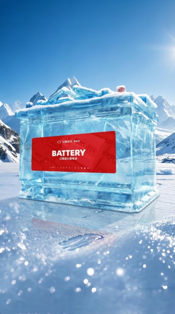 未来感十足的3D玻璃风电池,融合科技与清透质感,重拟物设计展现体积与光影,冰原雪峰背景强化冷冽氛围,虚拟现实视觉体验。