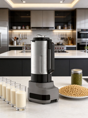 现代感与科技感交融的榨汁机设计,金属风与玻璃风结合,光影交错中展现清新清爽的视觉体验,重拟物风格强化质感,实景感十足。