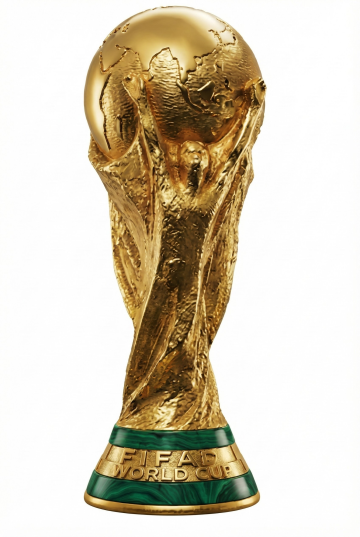 一张系列素材集合中的单张设计图,简约现代风格,画面中央是一个规整排布的金色奖杯图案,奖杯采用3D渲染效果,表面有细腻的金属光泽和高光反射,杯身中央有一颗五角星浮雕,两侧为对称的弧形杯耳,底座带有菱形格纹路,整体造型精致写实,背景为纯白色纯色背景,无其他装饰元素,视觉层级清晰,信息传达高效。