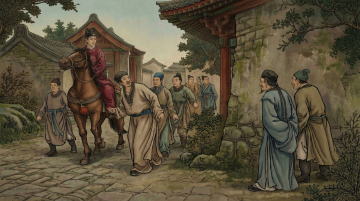 扁平淡彩,工笔画,俯视视角,国风工笔画国画风格,中式古风春日游骑插画:主体内容为身着橙色汉服的古代文士(头戴乌纱帽,衣袂飘逸,胡子),骑乘一匹浅白骏马(马身配素雅鞍具,缰绳坠红流苏),呈缓步行进的悠然姿态;场景设定为春日柳樱庭院:背景是翠绿底色,前景粗壮的柳树枝干交错,垂挂嫩柳叶与粉白樱花,花瓣散落草地;风格参考是新中式水墨淡彩风格,色彩清新柔和,兼具传统文人画的雅致与现代插画的细腻;色调色彩以绿(背景)、橙(汉服)、白(骏马)、粉(樱花)为主,整体色调清新明快,文士与骏马占据画面核心区域,柳樱元素环绕营造春日氛围;细节补充包括:汉服纹理轻盈飘逸,柳樱的枝叶花瓣刻画细腻,草地花瓣散落自然,整体呈现中式古风春日游骑的雅致插画。