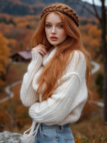 双色条纹毛衣搭配南瓜发饰,轻拟物风与实景感结合,营造出喜庆、可爱又梦幻的万圣节氛围,温暖治愈中透着趣味。