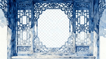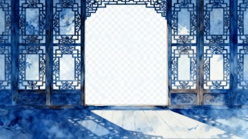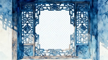 古风窗户横版,远景,蓝色,png,16:9,生成2张