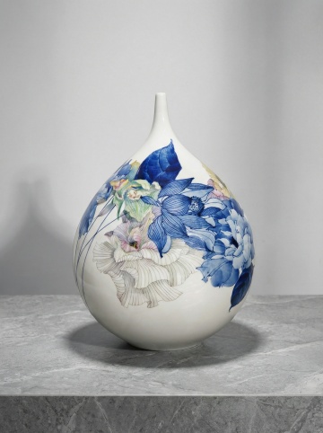 纯色背景上规整排布的六个中国传统玉壶春瓶系列,保持原瓶身修长颈部与圆润垂腹的经典造型,每个花瓶变换为完全不同的大师级丰富有趣花纹——含缠枝莲纹、青花山水、珐琅彩花鸟、古铜饕餮、水墨竹石、几何剪纸纹,整体画面色彩变换为青蓝、赭红、明黄、墨黑、翠绿、粉紫六组和谐色调,高分辨率陶瓷质感,光影柔和细腻,花纹细节精致繁复,兼具传统韵味与艺术创意的花瓶集合素材。