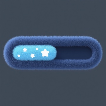 一个呈现毛绒风格的进度条图标,整体为长条形,两端是圆润的弧形。进度条主体部分是深蓝色的毛绒质感背景,左侧填充部分为浅蓝色的毛绒材质,内部有白色的星星点点作为装饰,整体风格可爱、柔和,具有明显的毛绒绒的触感和视觉效果。