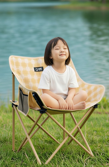 将参考图中的产品作为一个移动小摊,布置在周末公园的草坪上。旁边有几张户外桌椅,一位年轻的女性摊主面带微笑。一位母亲带着孩子坐在椅子上,享受着悠闲的时光。阳光透过树叶洒下斑驳的光影,整个场景宁静而美好,充满了幸福感。自然写实拍摄风景风格不要插画