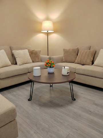 温馨的客厅沙发边摆放着桌子搭配些装饰整体要协调