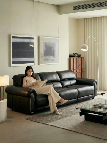 现代家具场景,地毯特写,极简主义风格,以浅灰色、米白色和白色为主色调,柔和的自然光从巨大的落地窗洒入,在地面和家具上形成清晰的光影层次和柔和的阴影,大面积铺设的浅灰色条纹地毯占据画面主要部分,质地柔软,纹理细腻,地毯前摆放着浅灰色的布艺沙发,沙发上有几个同色系的靠垫,沙发旁是一个圆形的金属框架小茶几,背景墙为浅灰色,墙上有一个细长的置物架,上面放着一个相框,整体空间干净整洁,线条简洁流畅,营造出宁静、舒适、高级的居家氛围,具有强烈的现代设计感和空间感。