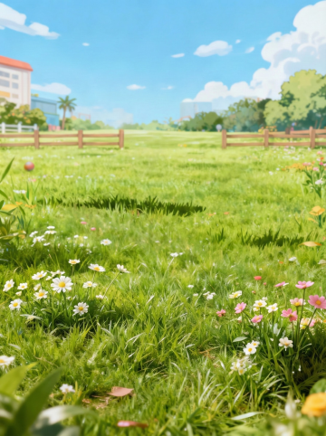 清新动漫风,虚拟自然场景,绿意盎然,阳光明媚,营造宁静和谐氛围。
