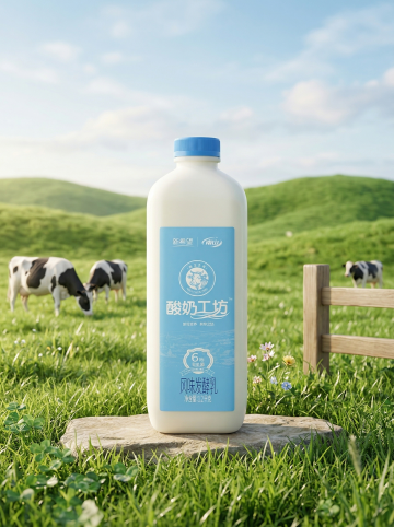 图示商品放置在浅木色餐桌上,周围搭配橙汁、牛角包、吐司、玻璃水壶。背景是浅米色墙面、置物架、透入暖光的窗户,装饰有绿植、花瓶等软装。