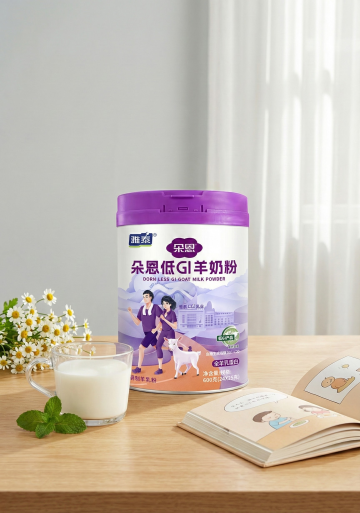 细节补充:光线为自然光(侧光),在产品包装上形成柔和反光,桌面有轻微的牛奶泼溅纹理,麦穗呈自然弯曲状态,整体画面有轻微的空气感和通透感,无多余杂物,突出“天然营养”的产品属性。