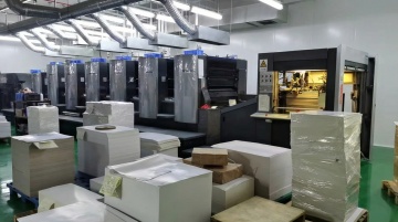 动漫风格工厂内部全景图,明亮的厂房空间,整齐排列的现代化白色工业设备,地面光洁反射灯光,穿着白色工作服的技术人员在设备间操作走动,金属质感的机械细节,天花板上密集的白色照明灯,整体呈现干净整洁的科技感生产氛围,线条清晰,色彩明快,略带卡通化的写实风格,无文字信息。