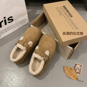 (内部细节/功能卖点) 构图: 近距离特写。一只手轻轻掀起鞋面,展示内部蓬松的羊羔绒。 背景: 虚化的暖色背景(如木质桌面)。 元素: 文案直接标注在图片上: 箭头指向绒毛:「内在」云端羊羔绒 旁边小字:瞬时温软,包裹双足 焦点: 绒毛的蓬松、细腻、温暖质感,强调触觉感受。