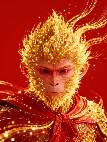 工笔风与剪纸风融合,嫦娥怀抱玉兔立于明月前,彩虹环绕,金箔浮雕山峦云海,牡丹盛放,红底鎏金,尽显中式古典与奢华梦幻之美。