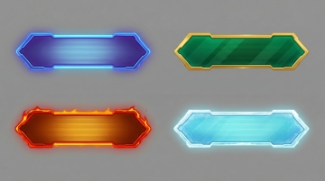 科技感十足的3D风UI标签,融合霓虹灯与金属质感,光影交错展现未来感与酷炫氛围,轻拟物设计增强体积感,象征元素之力。