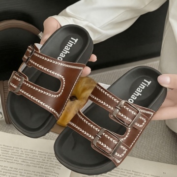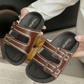 简约现代凉鞋,皮影风设计,清爽舒适,海滩实景感。