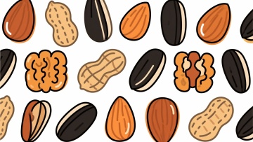 各种色彩鲜艳的零食整齐排列,从上到下依次为浅棕色的腰果、深棕色的碧根果、浅米色的花生、绿色的猕猴桃干、深棕色的椰枣、黄色的芒果干、红色的樱桃干、橙色的杏干、多彩的混合果干以及浅黄色的葡萄干,所有零食紧密平铺,形成丰富的视觉层次,整体呈现出真实、饱满的质感,色彩鲜明且自然和谐,营造出一种丰盛诱人的氛围。