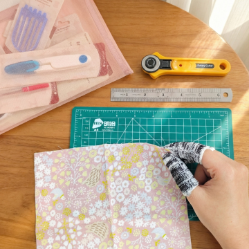 将桌面换成木纹桌面,整体画面需要柔和,产品细节不变类似第二张图片的场景和光线,需要一个从右侧打入的自然柔和的光线白,将第二张图片的滚刀横放在尺子的上方,滚刀稍微比尺子小一点,