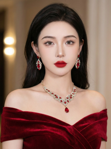 半身构图,亚洲年轻女性微微侧身45度,左手无名指轻触锁骨处珍珠项链的坠子,右手自然垂落于身侧,浅棕色中长发在柔和光线下呈现出蜜糖般的层次感,几缕发丝随动作轻轻拂过纤细的脖颈。自然妆容强调通透质感,浅棕色眉毛如自然生长般柔和,内眼线仅在眼尾处微微上扬,淡粉色眼影如晨雾般晕染眼窝,珊瑚色唇膏中央点缀着一丝透明唇蜜,光泽感底妆在偏侧光下展现出细腻的皮肤纹理。简约的金色几何耳坠随着头部微倾的弧度轻轻晃动,白色丝质吊带裙的肩带在肩胛骨处形成优雅的V形线条,背景是带有微妙纹理的奶油白,光线从左上方45度角温柔洒落,在颈部和锁骨处形成渐变的柔光过渡,整体氛围如同被时光定格的静谧午后,极简主义构图中蕴含着含蓄的优雅张力。