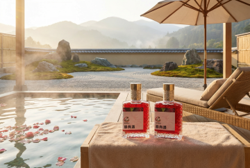 特写镜头下,两只手的细腻动作:一只手正从深色陶瓷小瓶中缓缓倾倒琥珀色精油,油滴在柔和光线下形成晶莹的丝线,另一只手掌心向上轻柔承接,背景变换为竹林环绕的日式温泉汤屋,木质结构与朦胧雾气营造出静谧疗愈氛围,整体采用暖调柔光,浅棕色与米白色为主色调,光影层次丰富,特写手部肌肤纹理清晰,精油光泽感真实,画面传递出舒缓、自然的SPA体验感,构图聚焦手部动态,背景虚化突出主体。