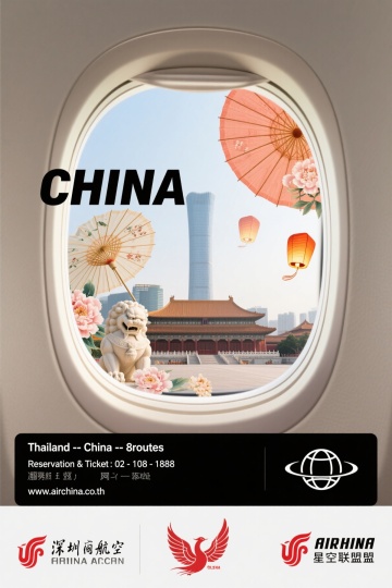 中式古典国潮风,大字“CHINA”显眼,伞灯元素点缀,传统与现代交融。