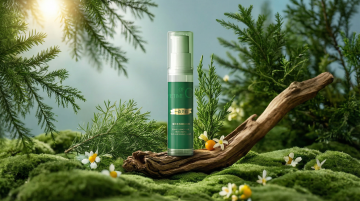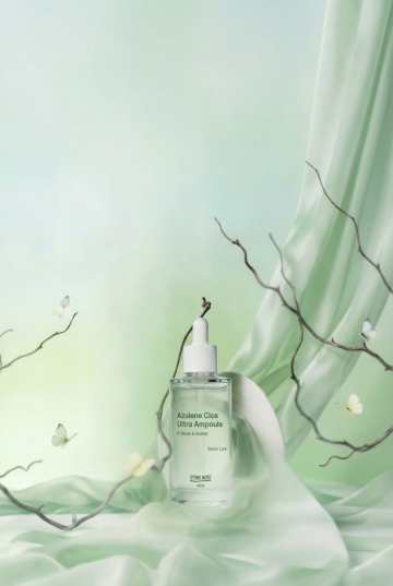 清新绿意背景搭配雏菊,柔和光影下展现产品纯净质感,轻拟物风与简约主义融合,传递自然优雅的护肤仪式感。